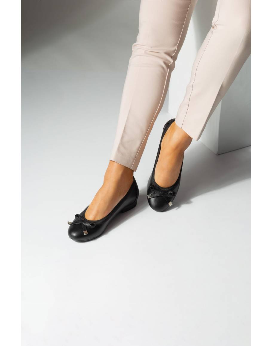 Балеринки с плосък ток изработени от черна естествена лицева кожа. Те са удобни, винаги актуални и пасват чудесно към всеки стил.