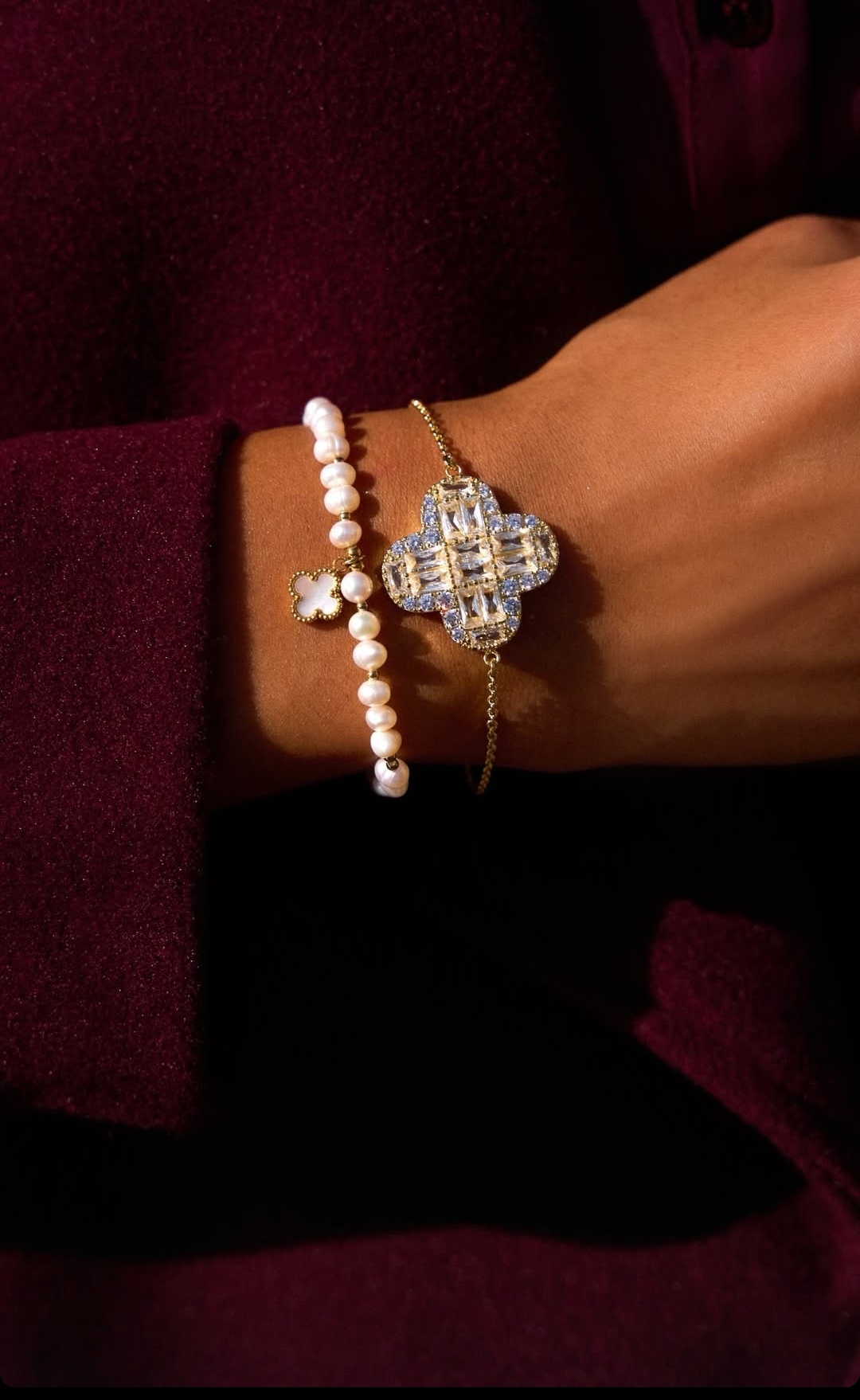 Златни бижута, като нашите обеци Roulé Gold, изглеждат великолепно в комбинация с тъмни цветове, като тъмносиньо, бордо или бутилковозелено. Бели и перлени акценти в бижутата също са чудесен избор, който напомня за зимния пейзаж – сняг и лед. Минималистични перли добавят финес към визиите, докато циркони или кристали, имитиращи ледени отблясъци, озаряват всяка комбинация. Нежните пастелни тонове, като пудрено розово, лавандула или светла мента, добавят деликатност и женственост към зимните тоалети. В същото време наситените нюанси, като изумрудено зелено, аметистово или тъмносиньо, като нашето колие Cristal Clover, внасят нотка мистерия и изтънченост, идеални за вечерни събития. Зимната палитра в бижутата е синоним на хармония и елегантност. Независимо дали избирате сребро, злато, перли или цветни акценти, правилно подбраните аксесоари ще придадат на визията Ви уникалност и блясък.Перлите са символ на класа и елегантност, който перфектно се вписва в зимните стилове. Можете да ги носите под формата на семпли колиета или като част от по-изискани обеци и гривни, като чудесен пример за това е нашето колие Pearls Moon. Неговият нежен, млечен блясък напомня за снежните пейзажи и добавя чар дори към най-небрежните визии.